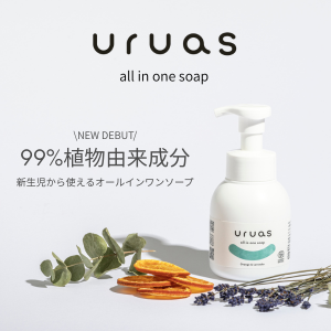「uruas all in one soap」は、顔・体・デリケートゾーンまでこれ1本で洗えるオールインワンソープです。
